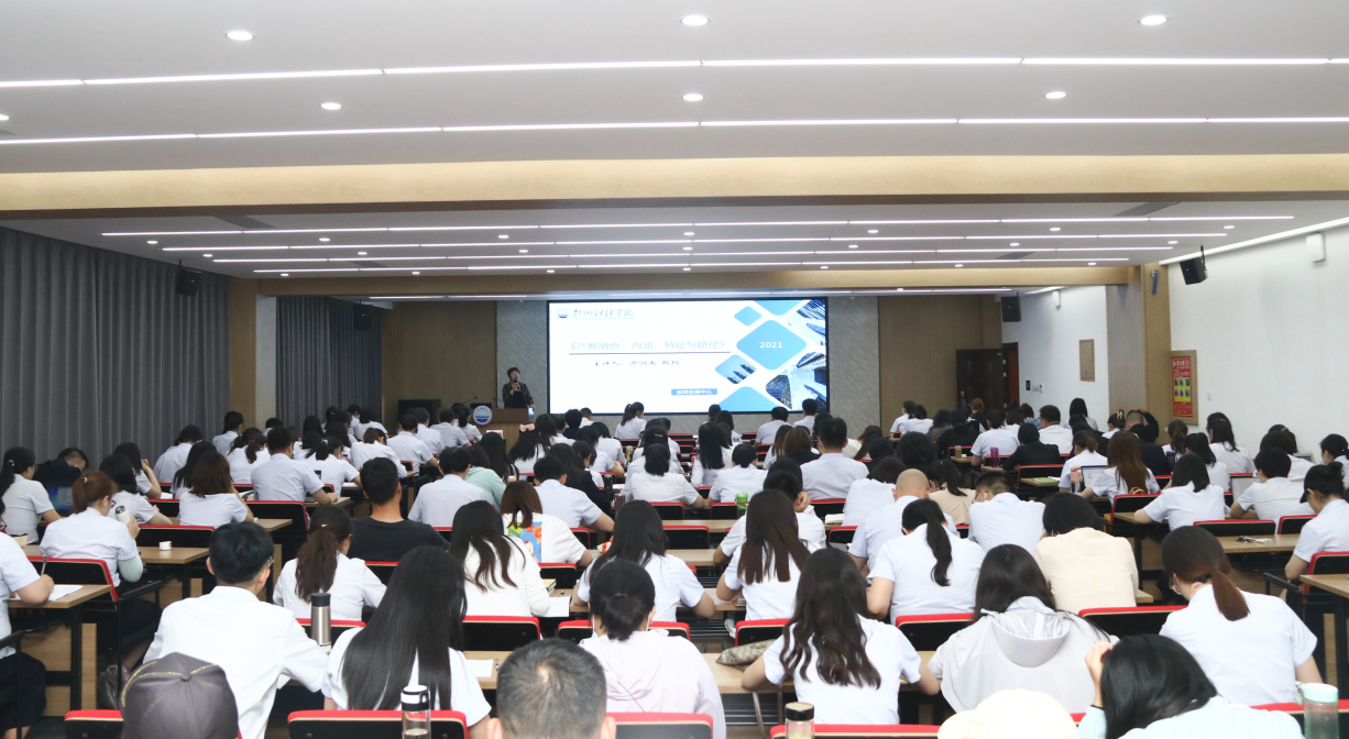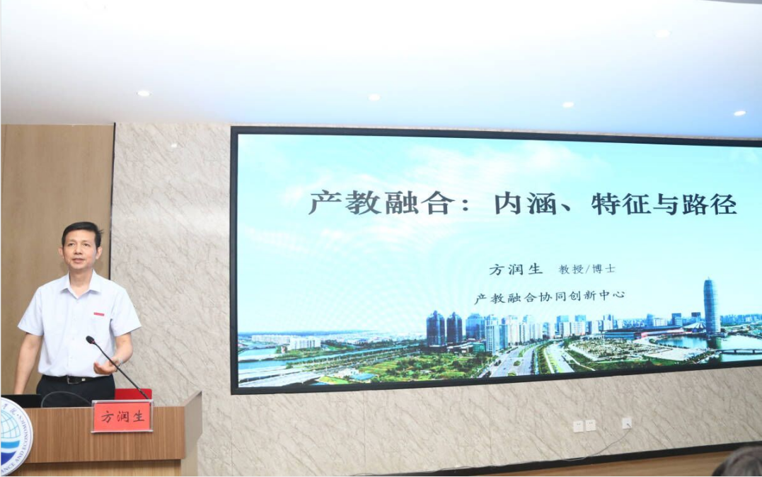 为深化产教融合、校企合作,深入推进育人方式、办学模式改革,为地方经济社会发展提供有力的人才和技能支撑,推动学校育人高质量发展,6月15日下午,万象城产教融合协同创新中心主任、科研处处长方润生教授在A楼第一学术报告厅作题为《产教融合:内涵、特征与路径》的专题讲座。副校长张胜利,各二级学院院长、教学副院长、教研室主任,教学部主任,部分职能处室负责人及教师代表共同聆听了讲座,会议由张胜利主持。