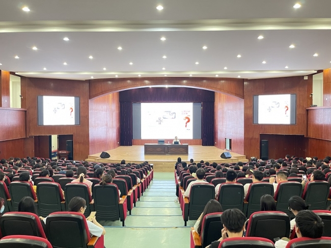 李丽围绕心理学研究什么、心理健康的标准、心理问题的成因分析、常见心理问题的识别、常见心理危机征兆及心理问题的预防及应对六个方面展开讲述,科普了心理健康知识,强调要关注心理健康,并对同学们提出的问题进行了耐心细致的解答。