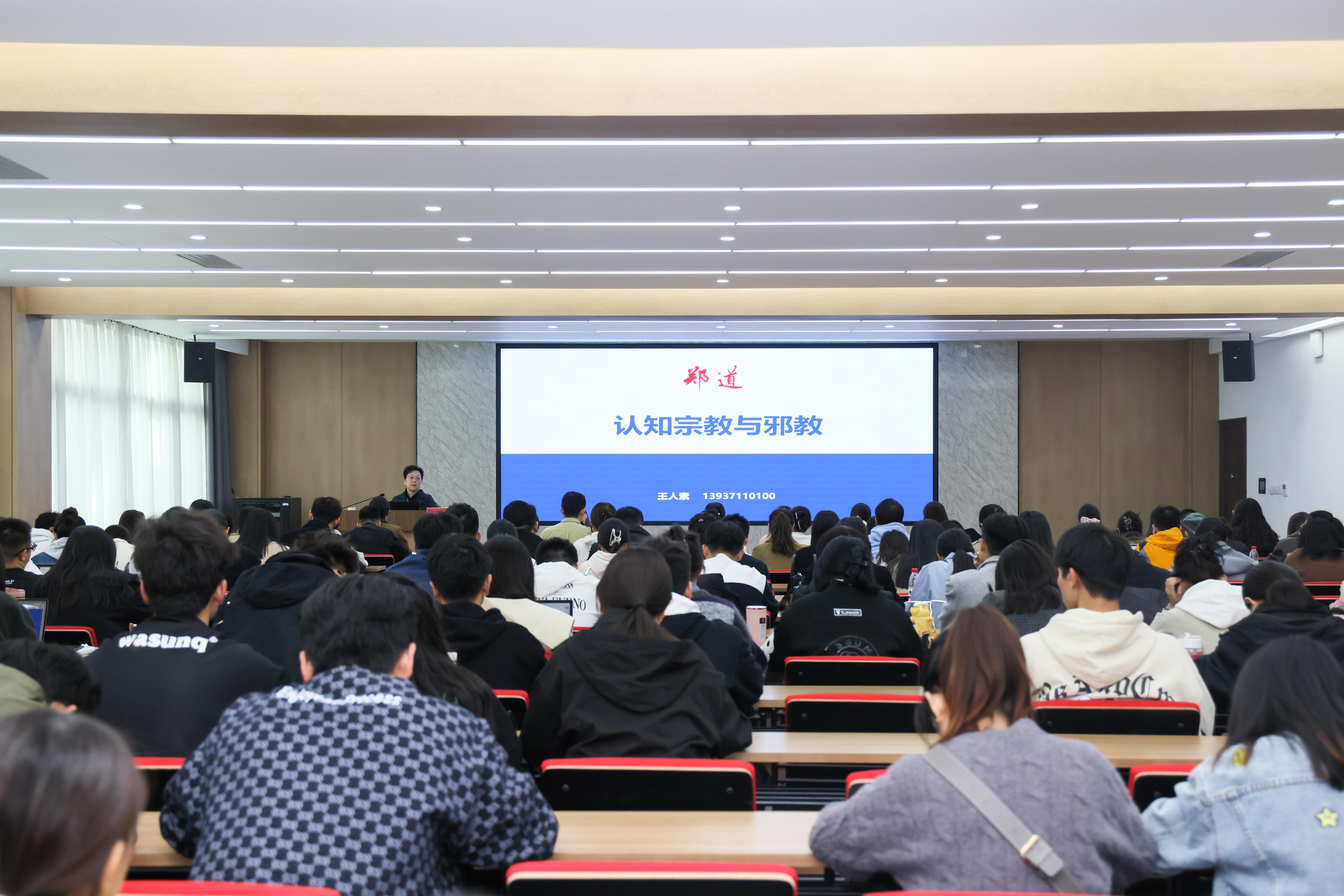 为做好万象城民族宗教工作和防范邪教工作,增强广大师生认识及抵制邪教的能力,11月7日下午,学校邀请郑州市反邪教协会副理事长王人素在德正楼第一学术报告厅开展专题讲座,全体新入职教师及学生代表参会学习。