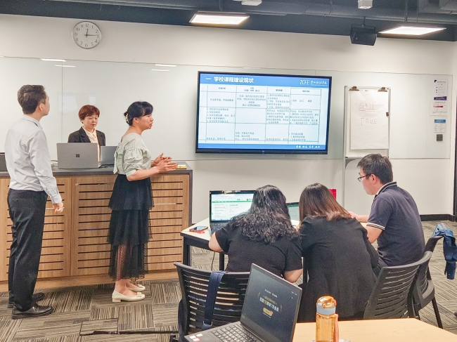12月13日上午,新加坡特许科技学院课程开发经理Paulynn老师以《商务沟通》课程为例进行示范教学。Paulynn老师介绍了以学生互动和能力培养为中心的教学大纲,根据课程学习目标,将该课程的考核内容设计为8个迷你作业、2个迷你项目、课堂参与和出勤率、期末项目等四部分,并选取第13章内容进行示范教学,指导学员通过小组协作完成课堂任务。
